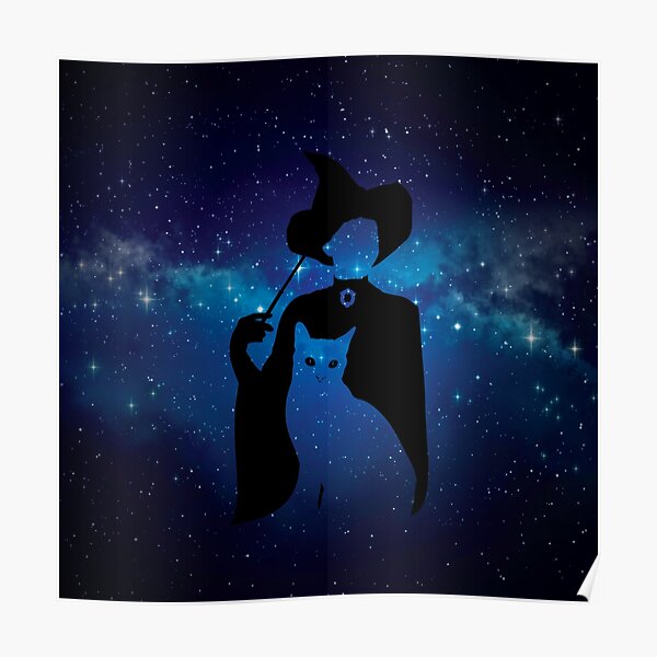 Cute cartoon cat Professor McGonagall in a witch hat with feathers Poster